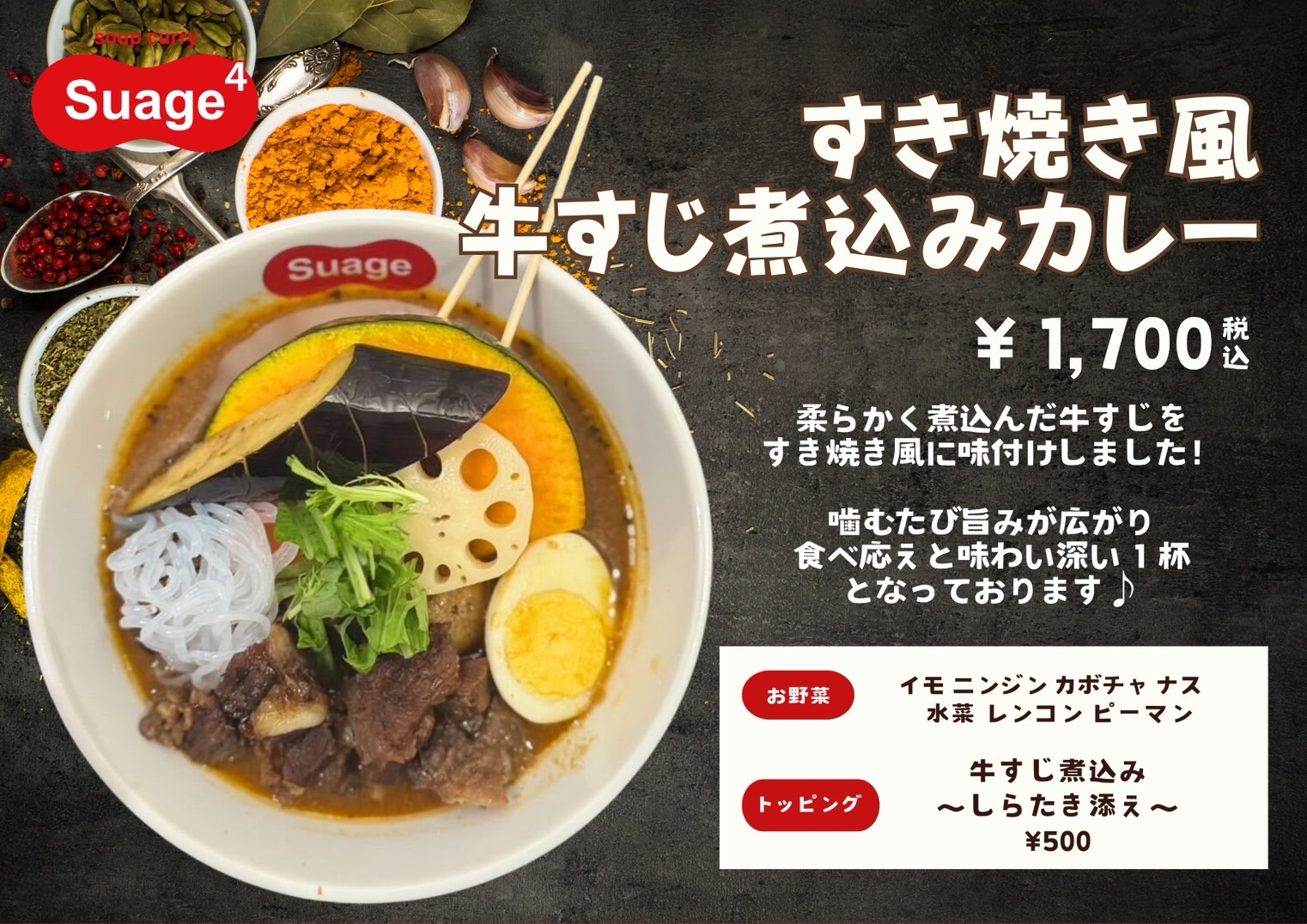 Suage特製スープに浸してもよし!!
